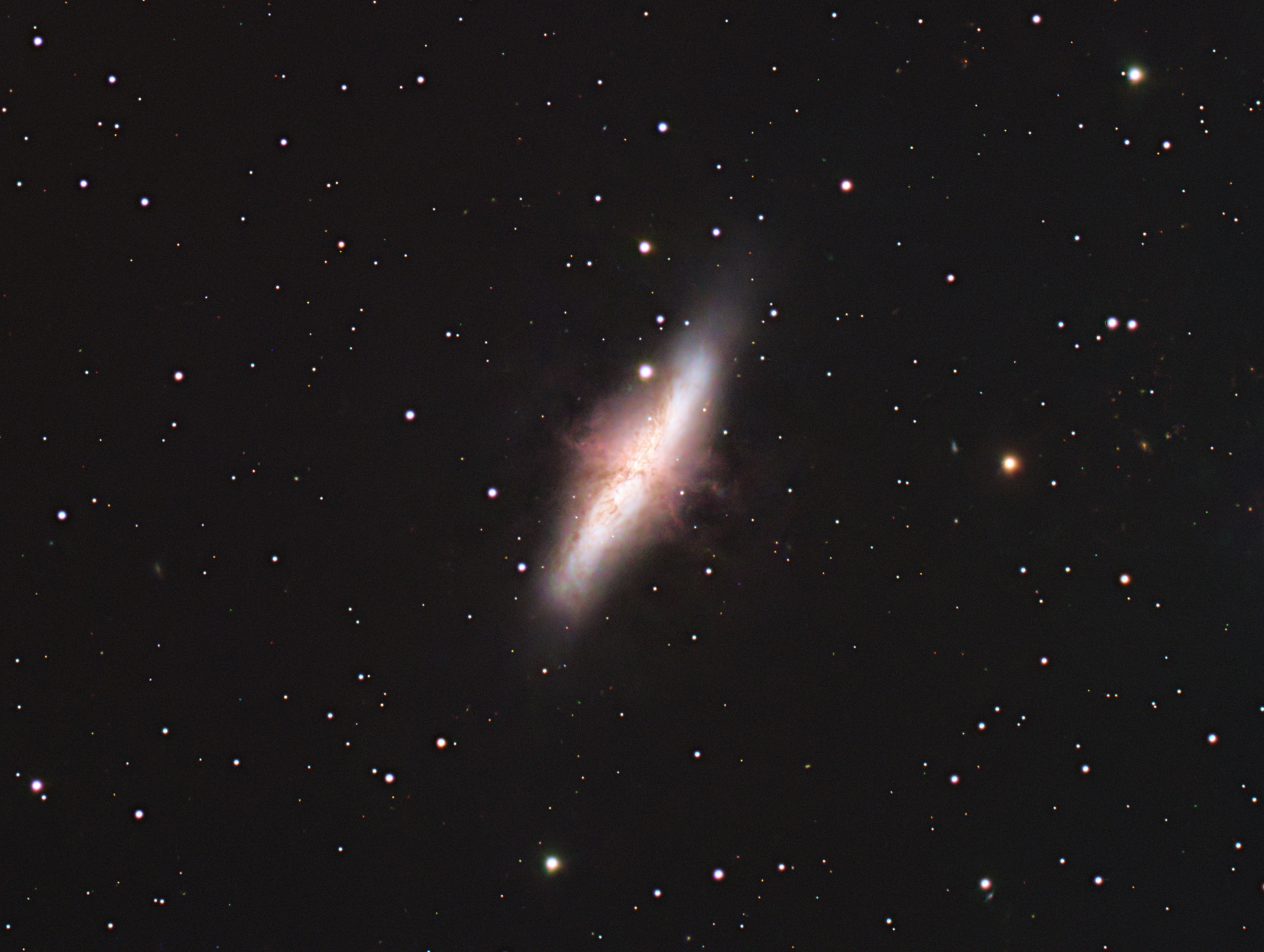 A starburst galaxy approximately 12 million light years away in the constellation Ursa Major.